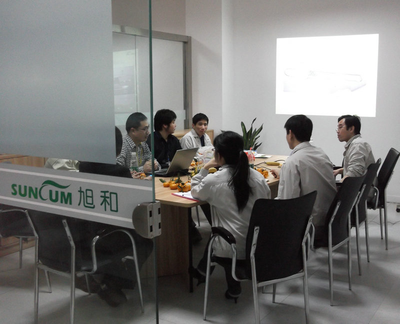 厂长向一行人介绍了产品的简要生产流程和生产设备的相关说明,正在车间工作的旭和员工向考察团致以了热烈欢迎,并请旭丽考察团观看一台正在生产中待组装完工的风淋室样品。装配组张组长表示:我们公司做的绝不是“捞一票”的生意,而是想把suncum品牌推出整个洁净设备市场,想有长远发展,有固定客户。所以我们格外注意产品的内在和外在质量,旭和产品的每一个零部件都是按设计工程师的要求一一挑选的。我们保证产品外在美观的同时,对内部构造也严格要求。并希望他们多多提出对产品的建议,以求共同进步。