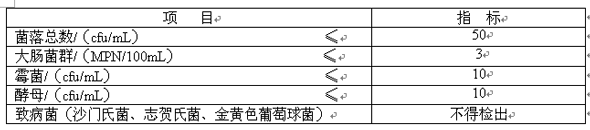 3.4 微生物指标 微生物指标应符合表3的规定。 表3 微生物指标